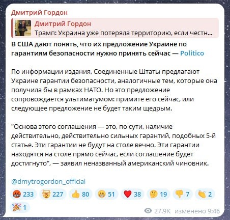 Какие могут быть гарантии от страны, где внешнеполитический флюгер может в любой момент развернуться на 360 градусов, как говаривала незабвенная Маня-Лена? А уж раз в 4 года он меняется со стопроцентной вероятностью и нулевой предсказуемостью. А потом вам, мои хорошенькие, скажут что это было решение предыдущей администрации. Попэрэдников по-вашему. За которое администрация нынешняя, разумеется, отвечать не может. Я бы так сказал: вероятность того что вас кинут, мои дорогие украинчики, не дотягивает до 100% только потому как есть вероятность, что через пару-тройку лет просто-напросто кидать будет некого (как государство). 🐶 Подпишись на Шарика! Гав!