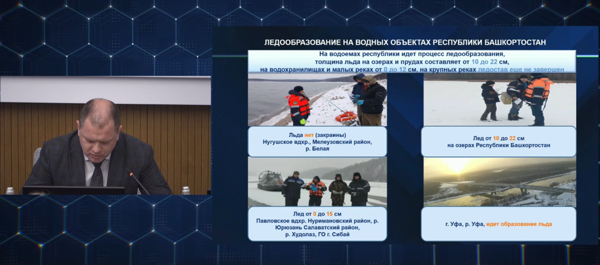 Как сообщил на оперативном совещании в правительстве председатель Госкомитета РБ по ЧС Кирилл Первов, в рамках профилактической операции «Тонкий лед» в республике проведено более двух тысяч профилактических мероприятий с охватом около 37 тысяч человек. По словам докладчика, в настоящее время на водоемах республики продолжается процесс ледообразования. Толщина льда на озерах и прудах составляет от 10 до 22 сантиметров, на водохранилищах и малых реках – от 0 до 15 сантиметров. А на крупных реках ледостав еще не завершен. «15 декабря в Бирском районе на озере Узеть при перегоне через неокрепший лед провалились более двухсот овец. Все животные, к сожалению, погибли. Сейчас собственник своими силами достает погибших овец из воды. После чего будет проведено их исследование под контролем ветеринарной службы», – рассказал подробности трагического инцидента спикер. Кроме того, за минувшую неделю системой «112» было принято и обработано свыше 55 тысяч звонков, в их числе поступило 57 сообщений о