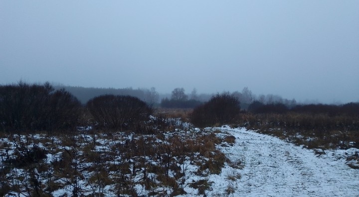 Прошли два мучительных морозных дня, когда мы с лошадкой ковыляли по замёрзшей острыми комьями дорожной грязи - на третий день выпал снег, прикрывший грубую "тёрку", и сразу начал таять, размягчая землю. Мы выдохнули - Лакуша снова почувствовала себя лошадью, а я себя, соответственно, человеком. Дождя нет, но воздух насыщен густым ароматным туманом, целительным бальзамом льющимся на мои жабры - у меня с детства нарушение носового дыхания, и такие туманные дни - единственное время, когда я свободно дышу, так что сейчас в полной мере наслаждаюсь жизнью. Мне вообще очень нравится такая погода - и туман, и сумерки, и то, как преображается пейзаж. Над рекой туман особенно густой. А в селе был прямо смог - дым от печей стелился по земле, смешивался с туманом, дышать там было вообще нечем. Триста метров от села - уже нормально. Особенно приятный бонус у зимнего тепла тот, что к деревяшкам не примерзаю😄 По-прежнему много с ними вожусь, и всю зиму мне это предстоит - и дрова, и ветки для