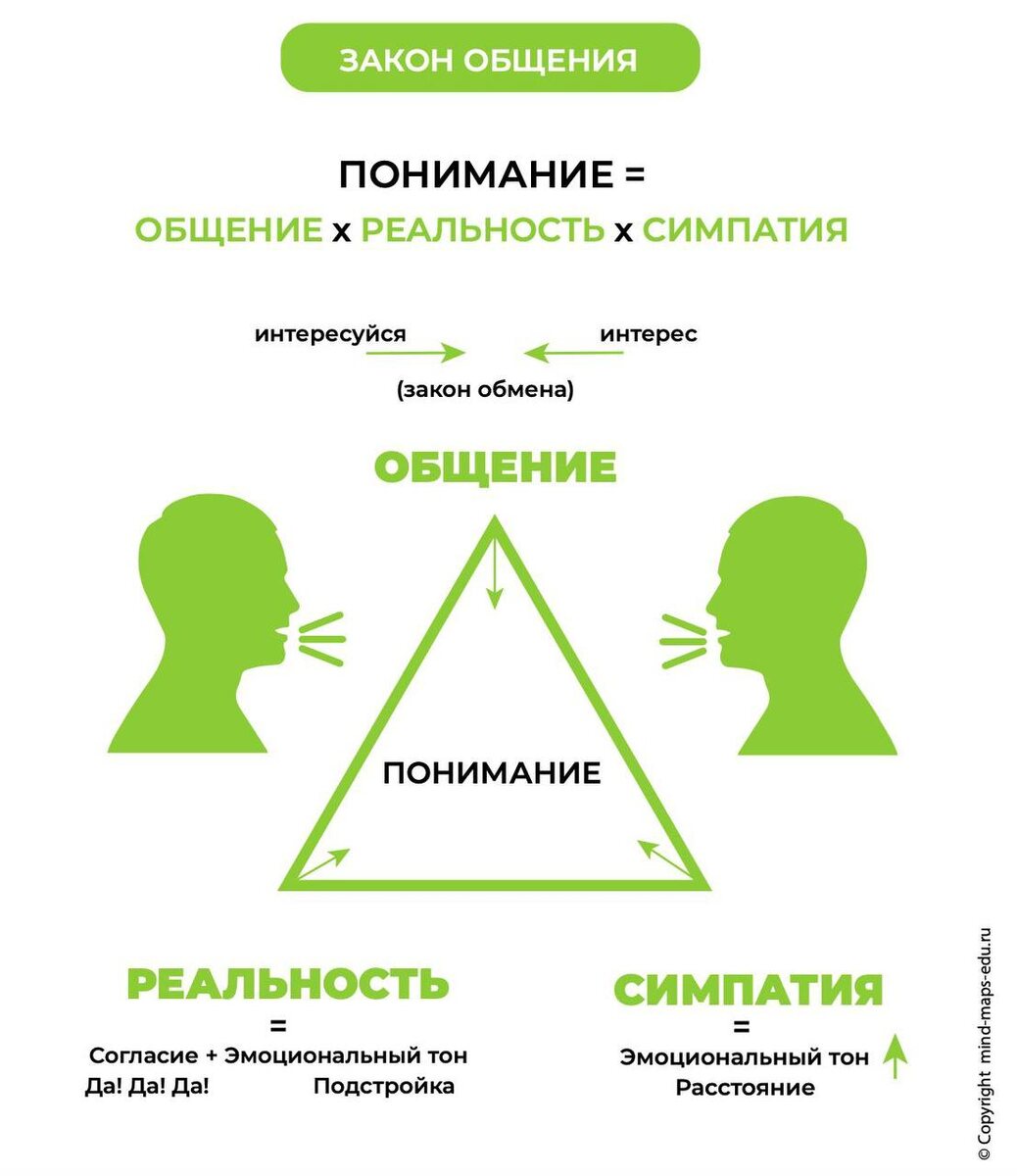 Понимание = Общение × Реальность × Симпатия Представьте это как треугольник: