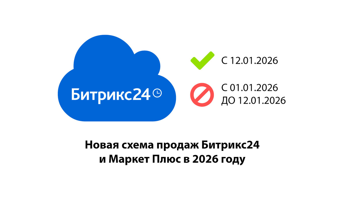 С 12.01.2026 будет изменена схема продаж Битрикс24, в связи с переходом на которую будут приостановлены продажи лицензий с 01.01.2026 до 12.01.2026 гг — планируйте покупку заранее! Здравствуйте, уважаемые пользователи платформы «Битрикс24»! Сообщаем важную новость! С 12.01.2026 будет применена вендором «1С-Битрикс» новая схема продаж облачного «Битрикс24» — в которой мы, как интегратор и партнёр, будем выставлять счёт на оплату, в котором получателем будет сам вендор ООО «1С-Битрикс». В связи с переходом на новую схему будут приостановлены продажи лицензий с 01.01.2026 до 12.01.2026 гг. на переучёт — планируйте покупку «Битрикс24» заранее! Почему стоит купить «Битрикс24» в декабре 2025 г.? Действуют скидки до 40%! Если вы планируете покупку облачного «Битрикс24», продление или переход на другой тариф, сейчас — самый удобный момент: до 30 декабря (включительно) действует акционная цена на лицензии «Битрикс24» со скидкой до 40%! Скидка 35% при покупке облачного сервиса «Битрикс24»* на 1