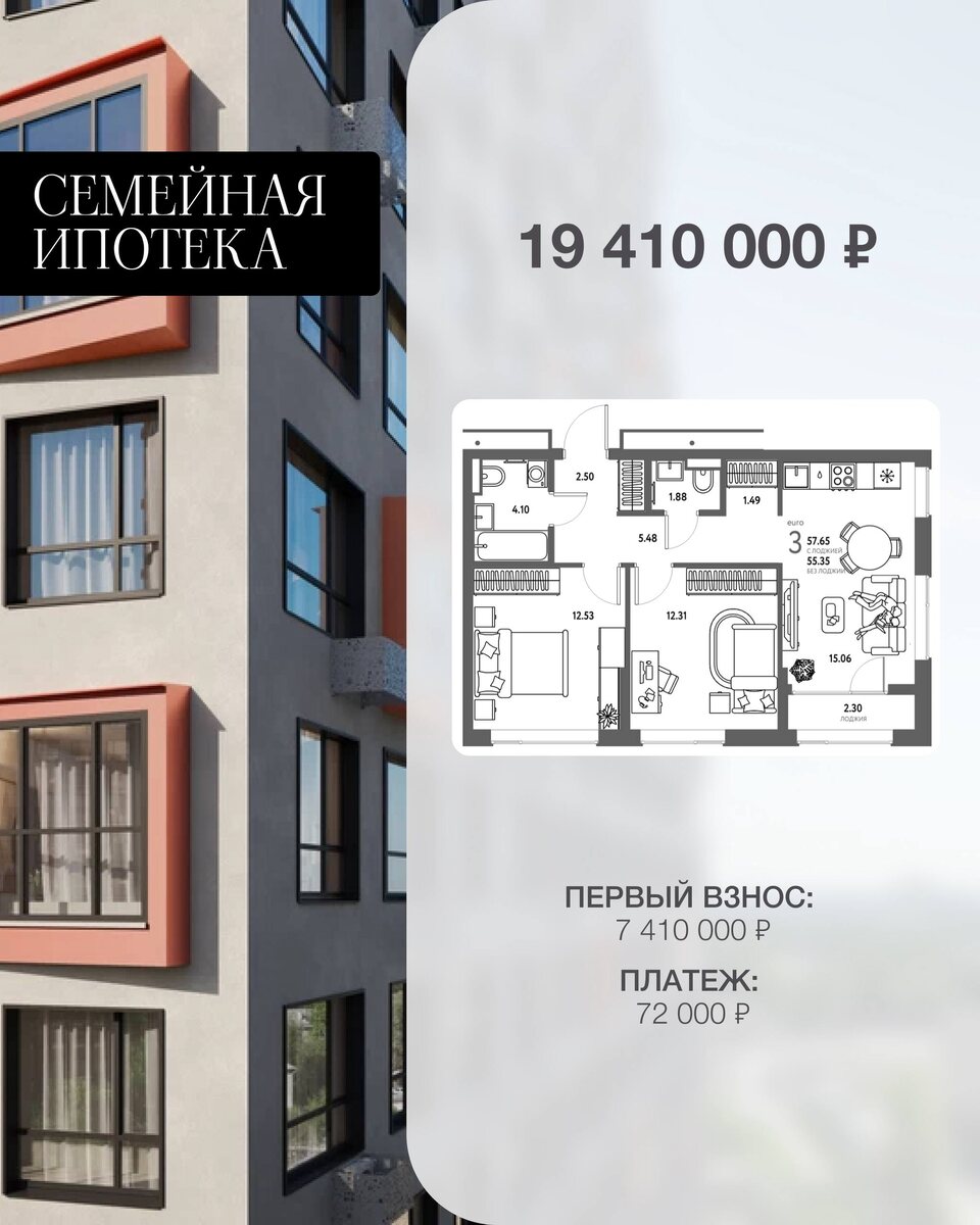 Первый взнос: 7 410 000 ₽ Платёж: 72 000 ₽