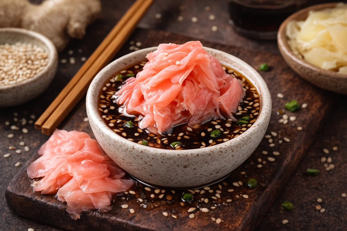 Маринованный имбирь мелко режу или пробиваю блендером. Добавляю соевый соус, уксус/лайм, мёд, масло и чеснок. Пробиваю до однородности, при необходимости разбавляю водой. Фишка: если добавить ½ ч. л. васаби или щепотку чили — соус становится ярче и отлично подходит к лососю.