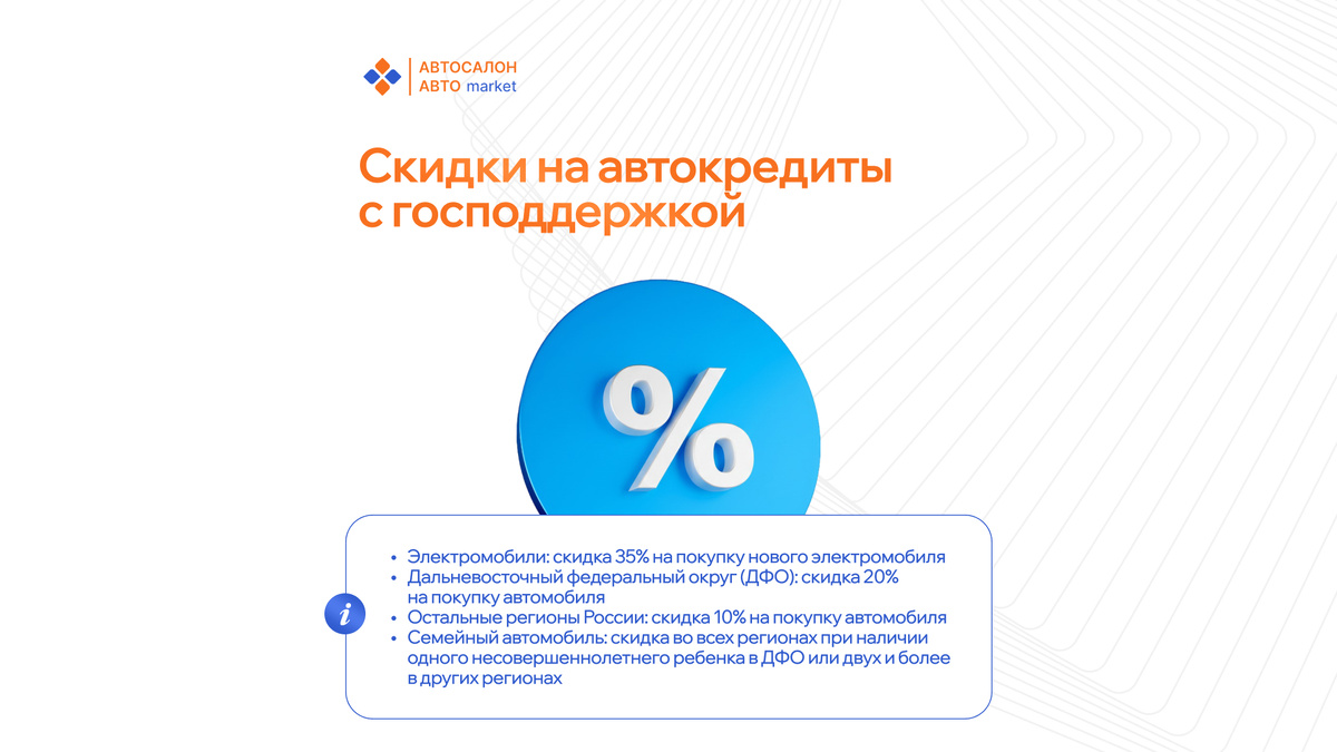 Государственная программа субсидирования автокредитов — отличная возможность сэкономить на покупке нового автомобиля. В рамках программы предоставляются скидки на автокредиты, что делает покупку авто доступнее. В этой статье мы расскажем, какие скидки предлагает программа и кто может стать ее участником. Субсидии на автокредиты позволяют существенно снизить стоимость покупки автомобиля. Вот какие скидки можно получить: Участниками программы могут стать различные категории граждан, в том числе: Процесс получения выгоды по госпрограмме достаточно прост: Не упусти возможность сэкономить на автокредите с помощью государственной программы! 📍 Березовский, Кольцевая ул., 4/1А