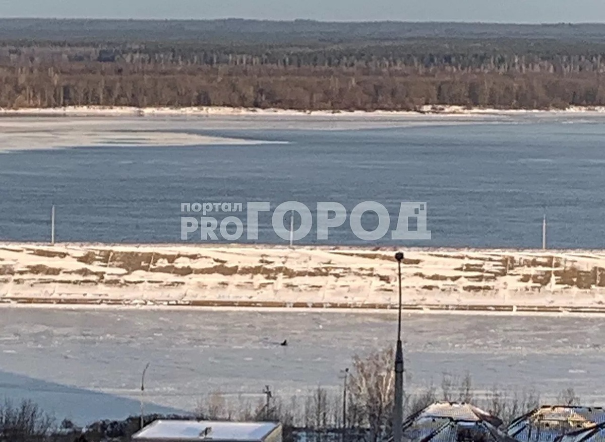 Рыбак вышел на тонкий лед Волги в Новочебоксарске, несмотря на опасность