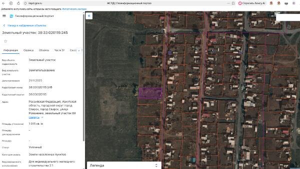 Название: Земельный участок с кадастровым номером 38:33:020115:245 площадь 1015 по адресу Российская Федерация, Иркутская область, городской