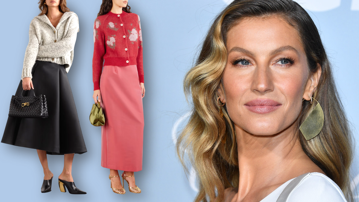 Когда речь идет о юбках А-силуэта и прямых миди, особенно удачно работают укороченные кардиганы до тазобедренных косточек или чуть ниже. Такая длина не перекрывает форму юбки и не ломает пропорции фигуры. Юбка остается главным элементом низа, ее линия хорошо читается и не перерезается горизонтальными линиями в широкой части бедра.