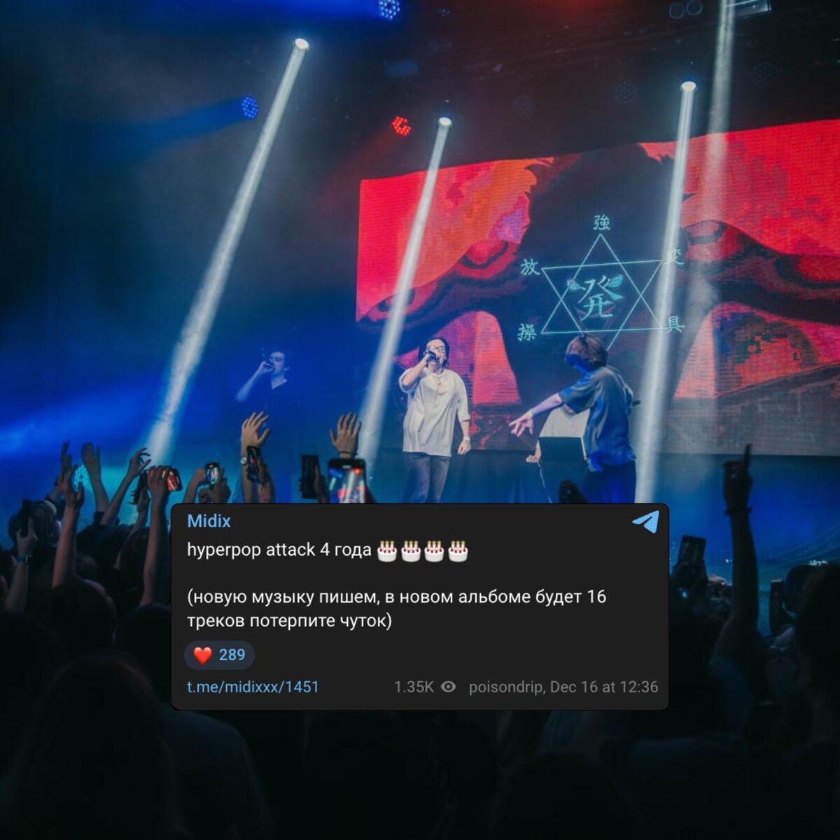 🔥 На новом альбоме Midix будет 16 треков Дуэт продолжает работать над новым альбомом, и новая музыка сейчас активно пишется. А вчера была годовщина альбома «HYPERPOP ATTACK», которому исполнилось уже четыре года. 💔 — зима 2021 @mainstreamusic