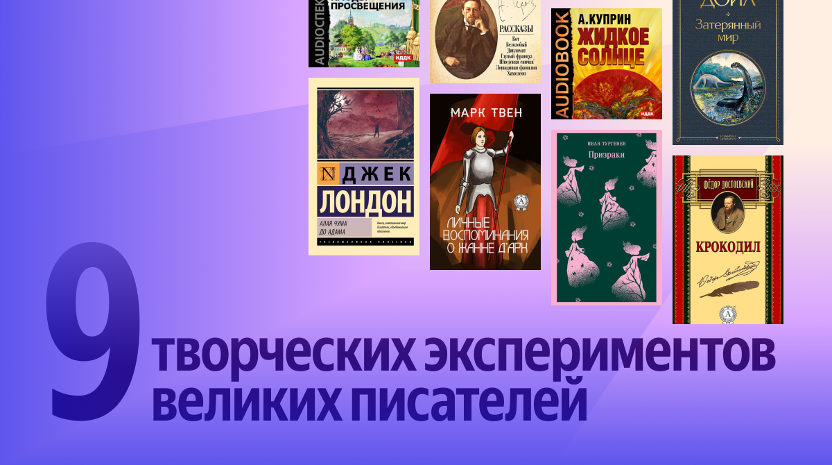 Великие писатели редко ограничивают себя одним жанром. Им хочется экспериментировать, пробовать новое, удивлять читателей. Иногда мастер психологической прозы вдруг пишет детектив, а сатирик берётся за научный трактат. Такие эксперименты не всегда становятся шедеврами, но всегда показывают неожиданные грани таланта. Читать Достоевского-фантаста или Чехова-детективщика — особое удовольствие. Собрали девять произведений, где классики вышли за рамки привычного и показали, на что ещё способны. А в конце вас ждет промокод на бесплатные 45 дней чтения! Мастер психологической прозы написал абсурдистскую сатиру о чиновнике, которого проглотил крокодил в Пассаже. Но герой остался жив и теперь философствует из крокодильего брюха, а жена подумывает о разводе. Достоевский высмеял бюрократию и либеральную интеллигенцию в духе гоголевской фантасмагории. Певец дворянских гнёзд вдруг написал мистическую повесть о полётах с призраком возлюбленной над Россией и Европой. Герой видит прошлое и будущее, на