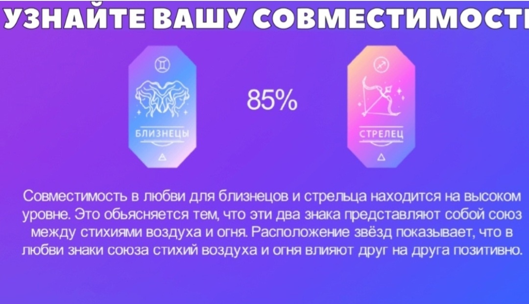 Это общая картина по солнечным знакам. Настоящая совместимость определяется лунными знаками (эмоциональная потребность), Венерой (как любим), Марсом (как действуем) и аспектами между картами двух людей.