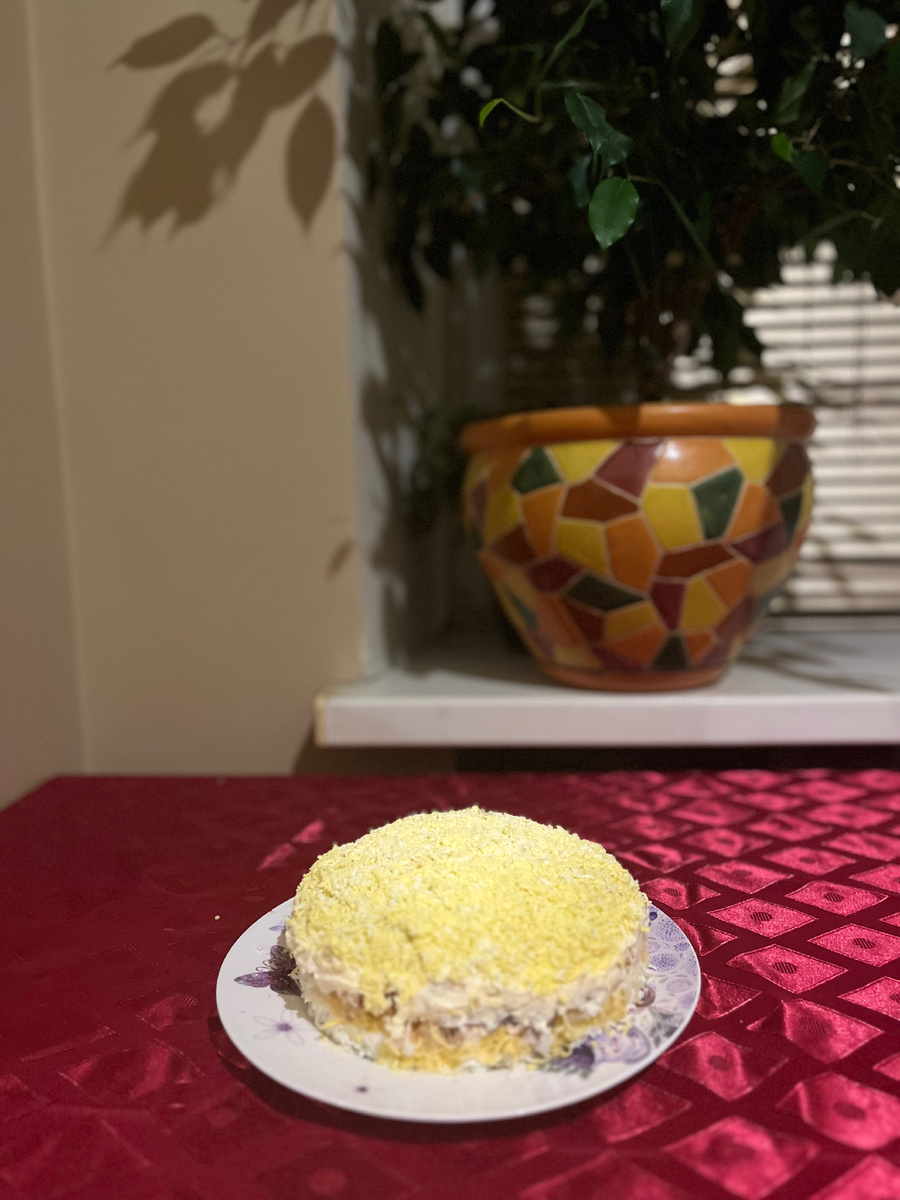 Добрый день дорогие друзья ! На самом деле я этот салат никогда не любила и не понимала. Но ! Как всегда счастливый случай. Как то я пришла к подруге и она меня уговорила попробовать , потому что она его делает по особому. И знаете мне на самом деле очень понравился именно этот вариант и конечно же я выпросила рецепт. И теперь готовлю только так. Решила поделиться и с вами , надеюсь вам он тоже будет по душе. Ингридиенты: яица(С1)-6шт. сыр (твёрдый)-100гр. луковица-1шт. горбуша-1банка. масло сливочное-50гр. майонез Сливочное масло положите сразу в морозильник , пока занимаетесь другими продуктами . Яица сварите вкрутую, остудите. Отделите желтки от белков. Далее я салат собираю в кольце кондитерском. 1 слой: на мелкой тёрке натрите белки. 2 слой: на мелкой тёрке натрите сыр. 3 слой: на мелкой тёрке натрите холодное сливочное масло. И разложите вилочкой по всей поверхности . 4 слой: горбушу достать из банки переложить в тарелку , вытащить крупные кости. И вилочкой размять . Разл