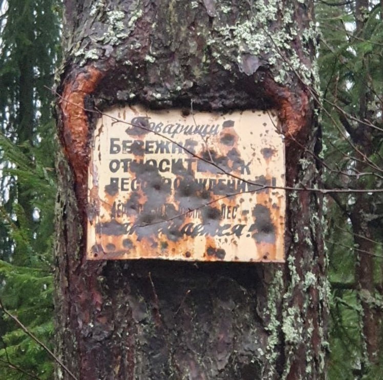 Товарищи! Бережно относитесь к лесонасаждениям! А вот дальше загадки во тьме. Кто видал такую табличку? Какой у неё полный текст. Кстати, оцените качество металла и краски. Дробью били-били, не пробили, ну и краска - сколько лет табличке, а не облезла и все сохранившееся более-менее читается. Фото прислал подписчик. Орехово, Питер. В комментариях выложил исходные файлы фото. #СССР #металл #краска #пожар #лес #каквисит