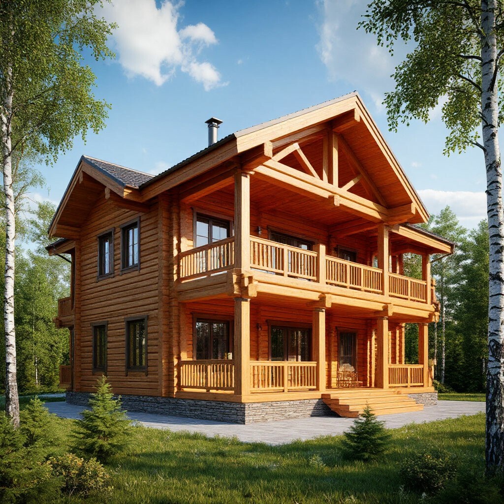 Дом из бруса с балконом выглядит особенно выразительно и гармонично в загородной среде. Натуральная древесина, панорамные виды и дополнительное открытое пространство создают атмосферу уюта и отдыха. Такое архитектурное решение отлично подходит для участков в лесной зоне и коттеджных поселков. При грамотном проектировании балкон становится не просто декоративным элементом, а полноценной функциональной зоной. В проектах домов из бруса мы заранее закладываем все конструктивные и эксплуатационные нюансы, чтобы балкон был удобным и безопасным. Расширенный функционал балкона Балкон — это дополнительная полезная площадь, которая расширяет сценарии использования дома. Здесь можно организовать: зону отдыха с креслами и столиком; место для утреннего кофе или чтения; пространство для занятий спортом или хобби; приватный уголок для релакса. В домах большей площади балкон может выполнять и практические функции: служить аварийным выходом при установке выносной лестницы; одновременно быть навесом ил