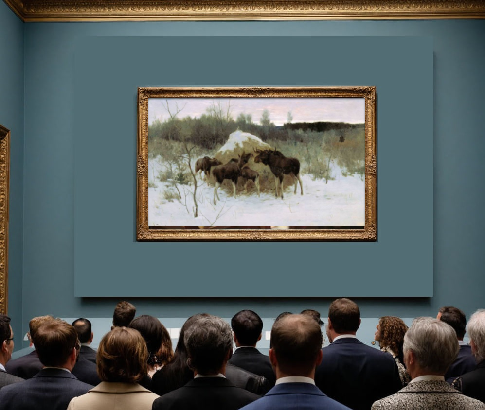 Зима, пасмурный день, опушка леса, семья лосей, стог сена, ветвистые рога, лакомятся, охраняет, вкусное угощение, лесники, помощь. Вариант 1 (Краткий и простой) На картине А. С. Степанова «Лоси» мы видим зимний пасмурный день. Семья лосей вышла из леса на опушку. Животные увидели стог сена. Это угощение для них оставили лесники, чтобы звери не голодали зимой. Маленькие лосята и мама с удовольствием едят душистое сено. Только папа-лось не ест. У него большие ветвистые рога, он сильный и важный. Глава семьи чутко прислушивается к шорохам и охраняет малышей от опасности. Мне понравилась эта картина. Она учит нас заботиться о животных в трудное время. Вариант 2 (Более описательный) Худо