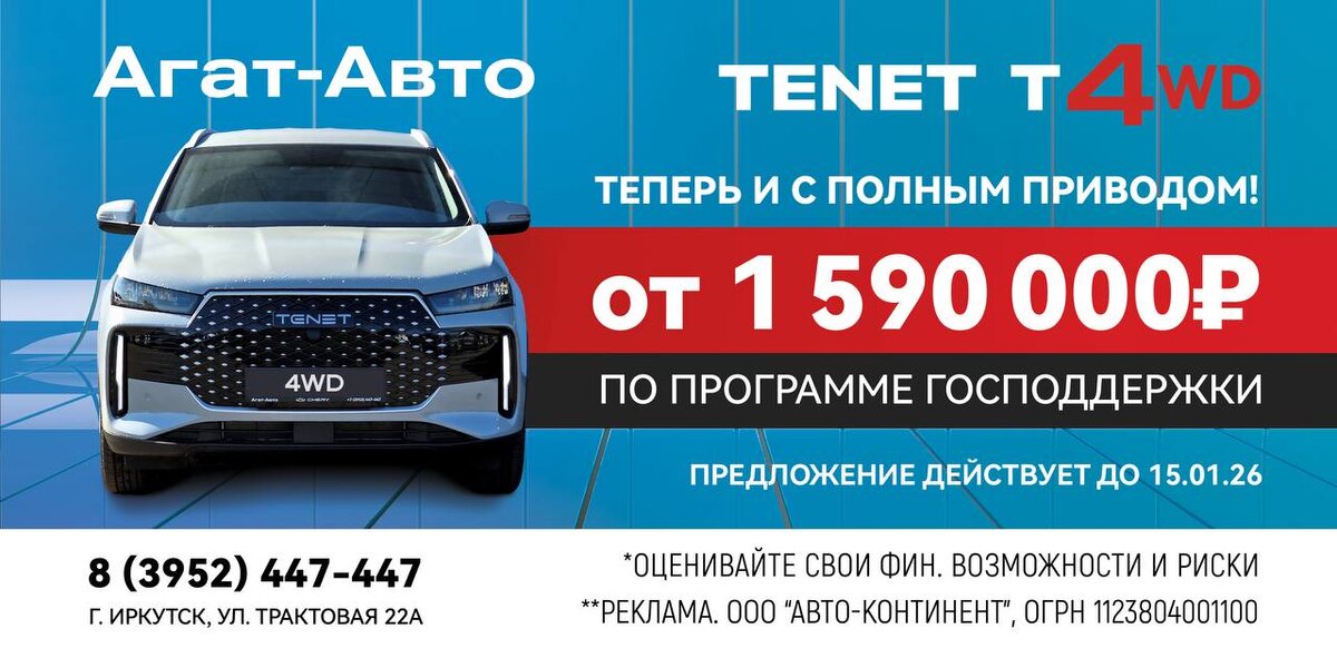 Долгожданная новинка от «Агат-Авто» - полноприводный ТЕНЕТ Т4! Мощный турбомотор, надежный 7-ступенчатый робот – и, впервые – ПОЛНЫЙ привод с 6 режимами настройки😱 Машины в наличии по цене от 1 989 920 рублей! Агат – Авто – делаем полный привод доступным! Звони 447-447 и забери свой Т4 с ПОЛНЫМ ПРИВОДОМ! Адрес: Трактовая 22А