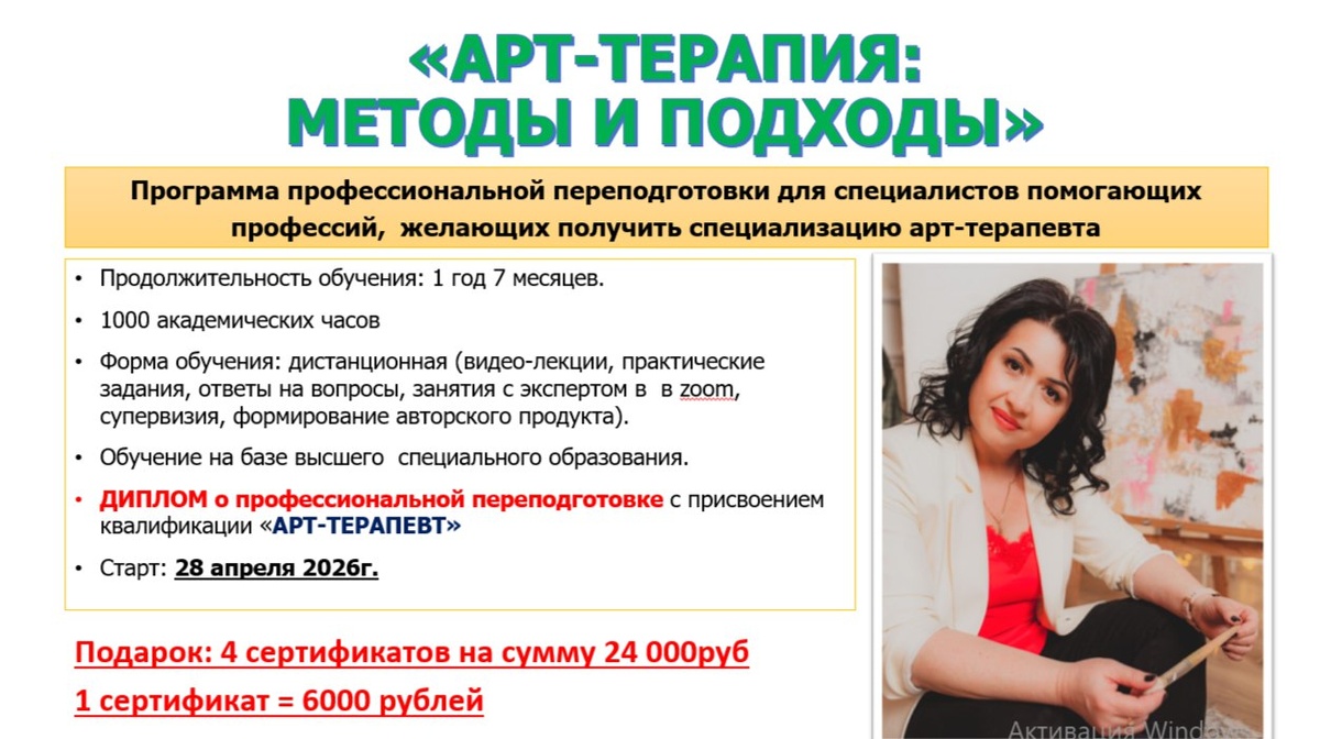 Продолжаем Вам рассказывать о лотах на НОВЫЙ ГОД С ЕИППП: Разыгрываем 4 сертификата на общую сумму 24.000 руб на программу профессиональной переподготовки "АРТ-ТЕРАПИЯ: МЕТОДЫ И ПОДХОДЫ" Тренер: Коляева Марина Владимировна. Подробнее: https://eippp.ru/arttherapy
