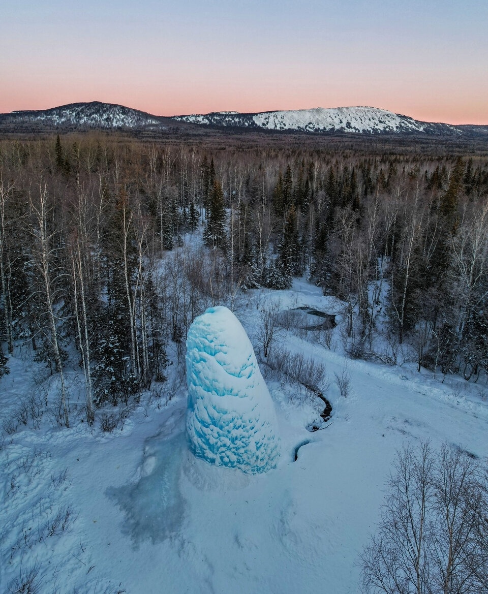 Фонтан представляет собой необычную сосульку, высота которой достигает 14 м. В 1976 г. во время поисков железной руды буровики наткнулись на подземную реку. Вырвавшийся поток воды был настолько мощным, что все бурильные работы пришлось прекратить, а отверстие заглушить. Однако со временем вода прорвала заглушку. Тогда установили новую металлическую заглушку с отверстиями, в результате чего получился фонтан. Хрустальный купол - незабываемое зрелище. Форма ледяной фигуры каждый год разная. Она зависит как от направления ветра, так и от температуры воздуха вокруг. Наиболее грандиозно выглядит фонтан в конце февраля, именно в это время его высота становится максимальной.С началом весны дорога сюда становится непроходимой. Летом фонтан представляет собой бьющую из земли струю с ледяной водой. Где находится: Челябинская область, Саткинский район, национальный парк «Зюраткуль». Самое-самое! Больше на сайте.