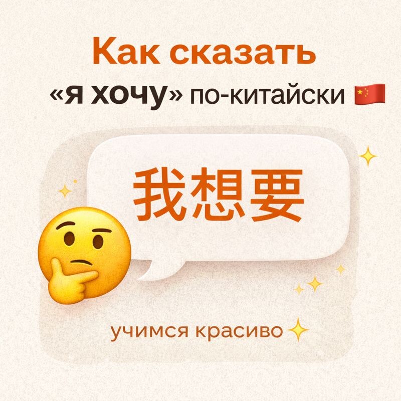 Если ты знаешь всего одну фразу, но хочешь говорить — выучи эту: 👉 我想要… Она подходит: