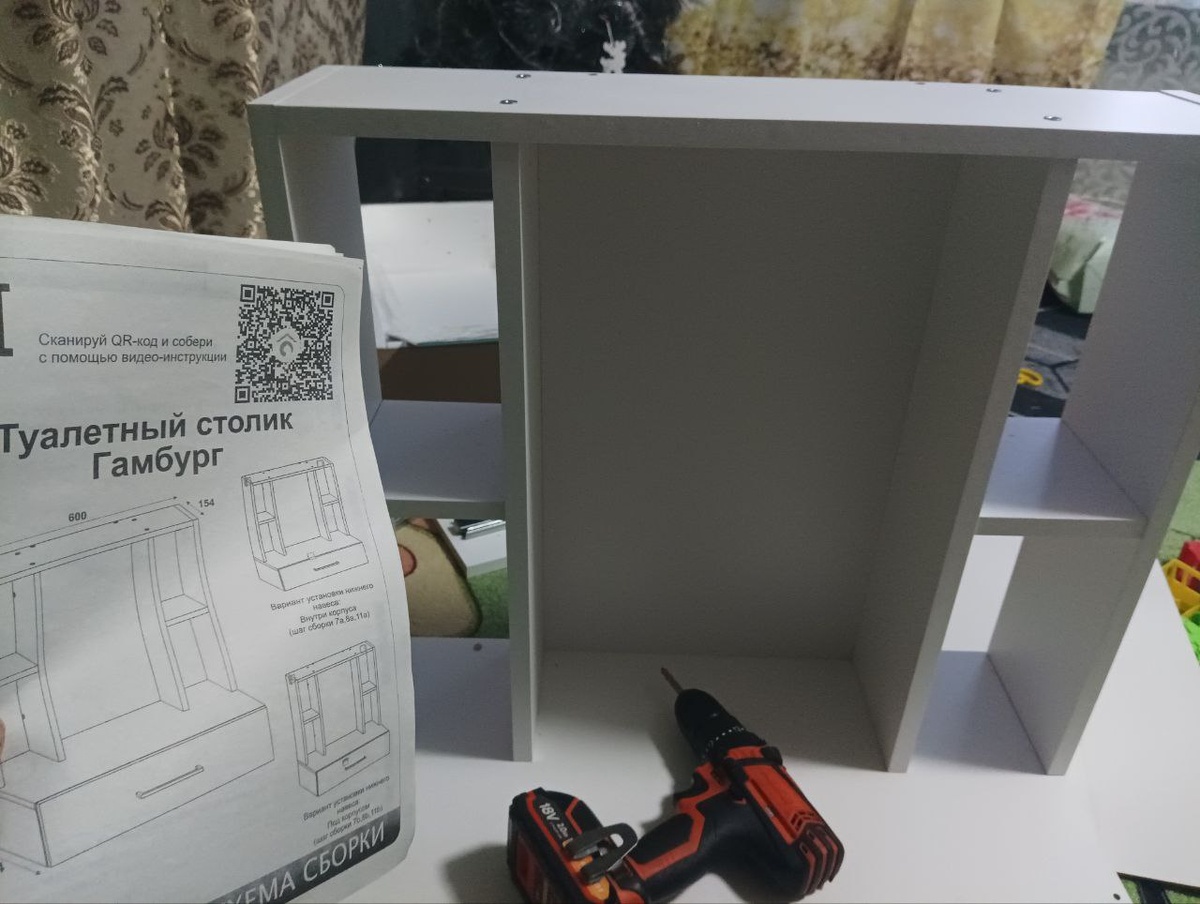 Здесь столько мелких деталей, да ещё и выдвижной ящик. Я очень долго соображаю 😁