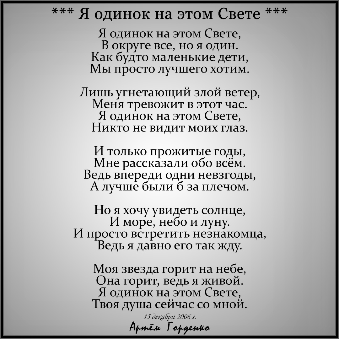 Я одинок на этом Свете