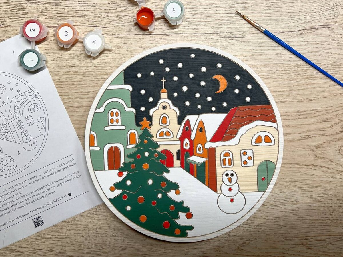 Закончила, лаком покрыла. Что скажу по факту: я рада, что не купила сама эту картину и вряд ли куплю еще одну аналогичную. Покрывать в 4 слоя краски одно и то же место мне не нравится. Если бы не наличие акрилового белого маркера, то снега не было бы 😂 На стенку повешу, картинка симпатичная, атмосферное украшение под Новый год. #яхудожник #картинапономерам