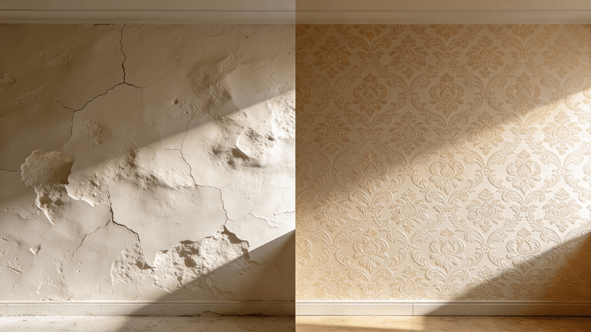 Кривые стены — это стандартная ситуация в большинстве квартир. Перепады высоты, бугры, впадины, едва заметные трещины создают проблему не при осмотре, а когда начинаешь готовить комнату к отделке. Маскировка обоями — рациональное решение для тех, кто хочет получить аккуратный интерьер без затратного выравнивания.