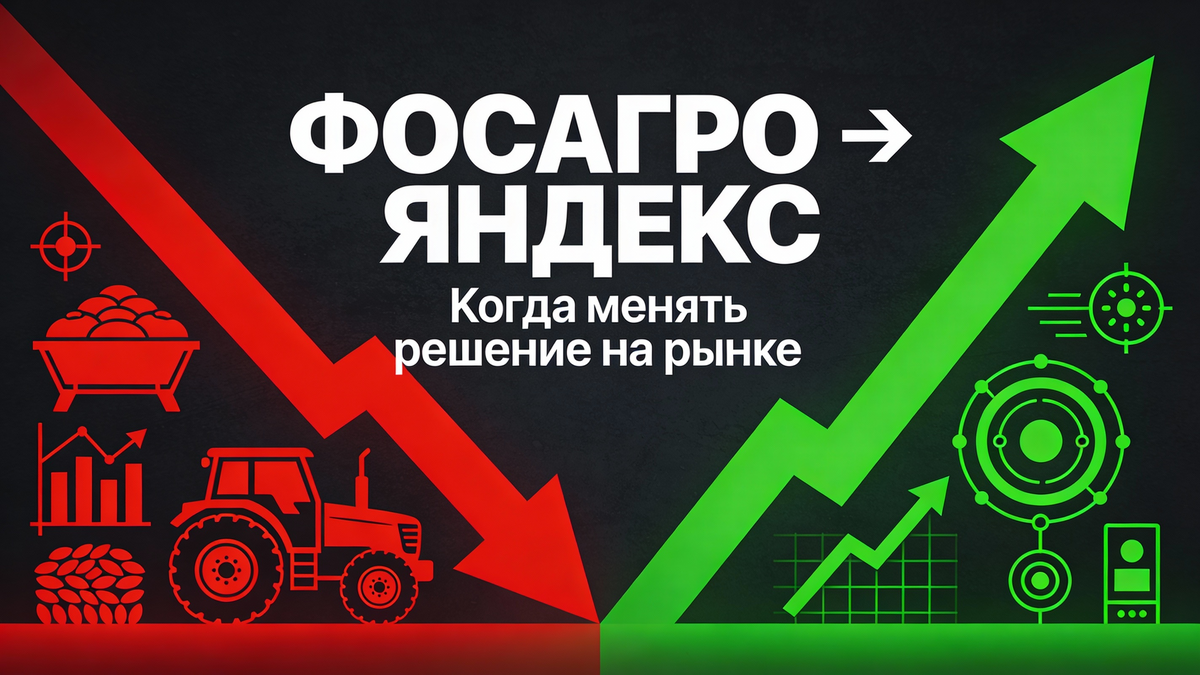 На рынке есть одна известная ошибка инвесторов: держать позицию, которая перестала работать, только потому, что вложился эмоционально или финансово. Называют это «эффектом привязанности» или просто упрямством. Я долго понимал эту ошибку только умом. Пока сам не вложился в идею, которая казалась логичной, но условия рынка изменились. Это произошло с ФосАгро в начале декабря 2025 года. Идея была простой: девальвация рубля будет поддерживать экспортёров. ФосАгро — крупнейший производитель удобрений в России, экспортирует большую часть продукции. На слабом рубле компания выигрывает дважды: выручка в валюте растёт, а издержки остаются в рублях. Логика была правильной. Я вложился (сделка была открыта в конце августа 2025 года). Но потом условия изменились: девальвации по-факту не было. Рубль держится стабильнее, чем можно было ожидать. Идея, на которую я делал ставку, перестала работать. В такой ситуации спасает придуманное для себя разделение на три слоя — не просто для красоты, а как систе