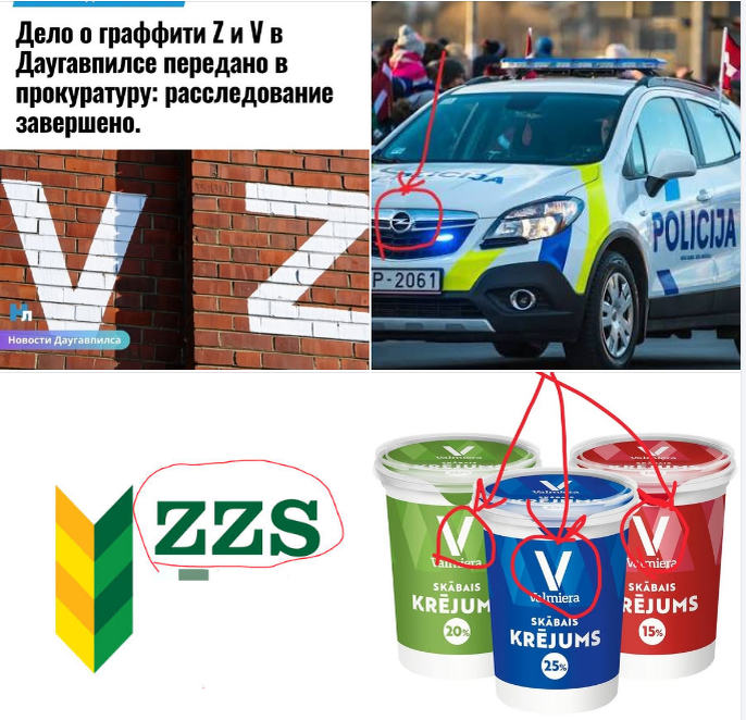 Латвийская власть такая наглядно противоречивая... Некоторых из её представителей обсуждают и привлекают к ответственности, а иные публично демонстрируют неугодные символы и знаки и им никто даже предупреждения не высказывает. В начале декабря сотрудники Управления Латгальского региона Государственной полиции завершили расследование по уголовному процессу в отношении двух жителей Даугавпилса. Мужчин обвиняют в нанесении на фасады жилых домов, деревья и дорожные знаки букв Z, V и надписи ZOV, которые в публичном пространстве рассматриваются как символы, прославляющие военную агрессию. * Что делать с автомобилями на которых установлены Z? * Что делать с политическими партиями в аббревиатуре названия которых есть неугодные знаки? * Что делать с брендами продуктов товаров и услуг у которых прямо на упаковке печатают страшные буквы? Ну и на последок внесите ясность, как поступать с Джонстоном Маккалли (англ. Johnston McCulley) — американским писателем автором сотен книг и сценариев, но н