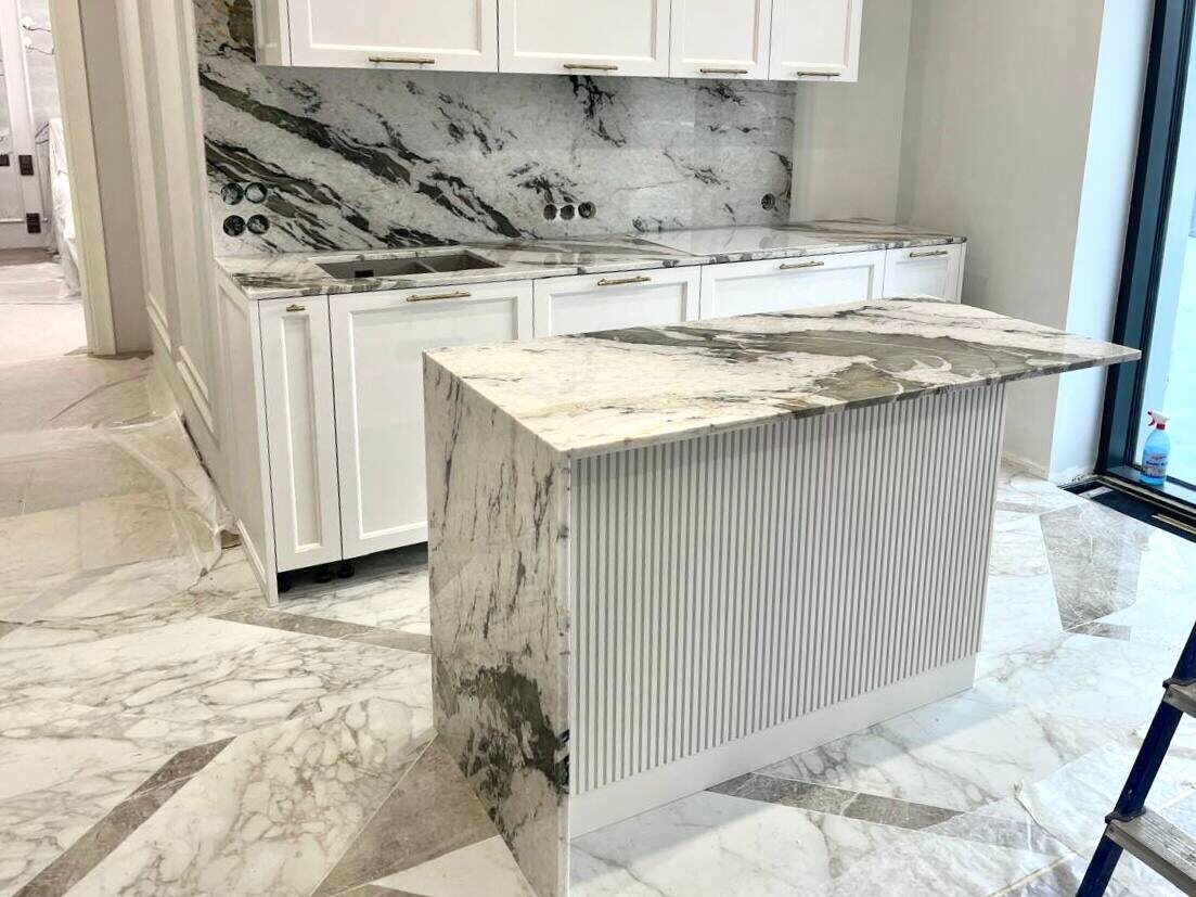В этом проекте выполнены столешница, остров и стеновая панель. Панель не просто защищает зону готовки, а логично продолжается в стену, собирая пространство в одно цельное решение. Натуральный кварцит - это материал, идеально подходящий для кухни. Он прочный, стабилен в эксплуатации, и рассчитан на ежедневное использование. Именно поэтому его всё чаще выбирают для рабочих поверхностей. Нас часто спрашивают о натуральном камне на столешницах. И можно смело сказать, кварцит - один из тех материалов, с которыми можно быть уверенным в результате. Каждый слэб отличается оттенком и рисунком, поэтому подбор натурального материала всегда индивидуален. Мы хорошо ориентируемся в наличии у поставщиков и экспертно подбираем камень под каждый конкретный проект с учётом особенностей и задач интерьера @interquartz