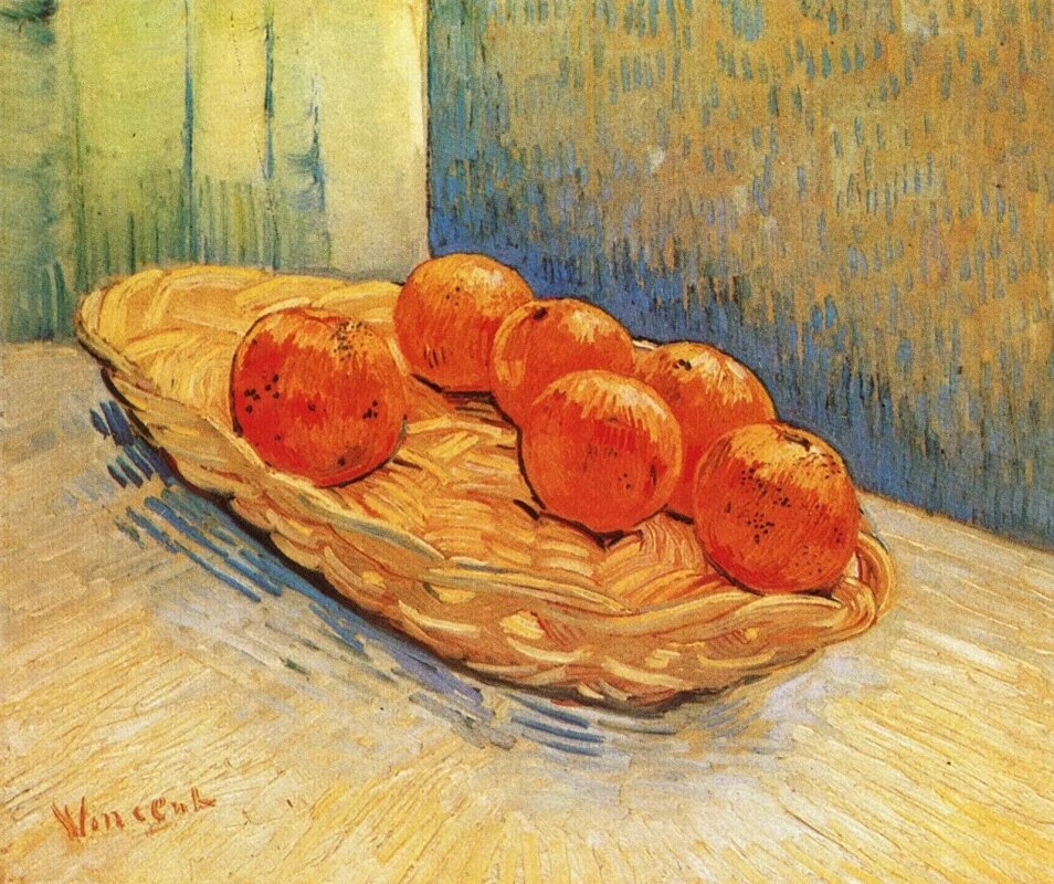 Я только что закончил этюд, подобный тому, который есть у моего Люсьена Писсарро, но на этот раз это апельсины. , — написал Винсент Ван Гог (1853-1890) брату Тео около 9 марта. Теперь у меня восемь этюдов. Но это не совсем считается, потому что я ещё не работал в комфортных или теплых условиях. Затем, в начале апреля, пытаясь восстановить с Тео их различные связи с голландской семьей, дилером и художниками, он рассматривал возможность посвятить этюд Брайтнеру (у меня есть точно такой же этюд, которым я обменялся с Л. Писсарро, и тот, что есть у Рида, с апельсинами, передний план белый, фон синий). Ван Гог подружился с художником Георгом Хендриком Брайтнером (1857-1923) в Гааге в 1882 году. Они вместе совершали прогулки и делали зарисовки пейзажей. Правда, картина Ван Гога «Корзина с апельсинами» так и осталась без дарственной подписи. Картина имеет размер 45 х 54 см. И находится в частная коллекция в Лозанне. Статьи о жизни и творчестве Ван Гога: P.S. Приглашаем вас посетить наш те