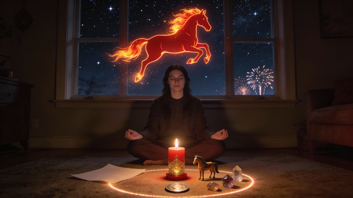 Новогодняя ночь 2026 года — идеальное время, чтобы настроиться на энергию Красной Огненной Лошади и числа 1, которые отвечают за удачу, лидерство и новые начала. Такой ритуал можно сделать даже дома: без сложной атрибутики, но с правильным внутренним состоянием и ясным запросом к Вселенной. Ниже — подробный, но простой сценарий: подготовка пространства, медитация «под Лошадь», аффирмации числа 1 и шаги по хорарной астрологии для предсказания успеха.