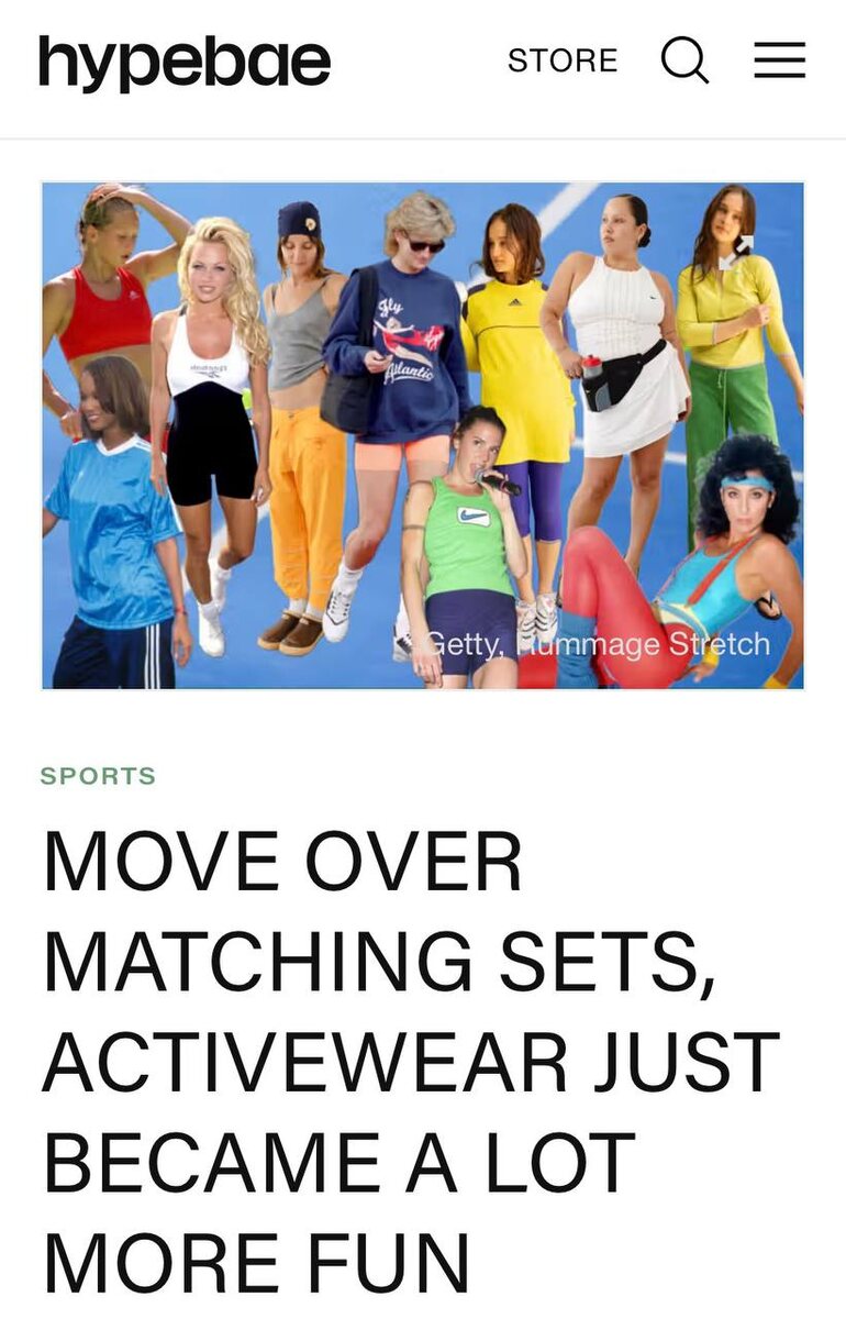 Читаю про это уже во всех фэшн-изданиях. Молодые люди ломанулись на ресейл за старенькой формой Nike, Lululemon, леггинсами на низкой талии, хлопковыми капри и яркими топами. Если коротко, это и бунт зумеров против набившей оскомину эстетики alo yoga, и тревога из-за новостей про вредные химические вещества, которые регулярно находят в синтетической форме. Ну и, конечно, вдохновение нулевыми и 90-ми. Современная культура спортивной одежды незаметно стала более стерильной что ли. Приглушенные цвета, все облегающее, фасоны однообразные. И люди меняют шорты, приподнимающие ягодицы, на свободные штанцы. По статистике - резкий взлет запросов на винтажную спортивную одежду. Хотя находятся и те, кто не понимает, как можно носить форму, в которой кто-то долго потел) Но дальше все понятно: бренды просто подхватят этот тренд и будут выпускать комплекты в этом стиле. И это уже началось. Так что Энтони Ваккарелло очень даже в тему со своими ретро шортами и олимпийками. Вишлист