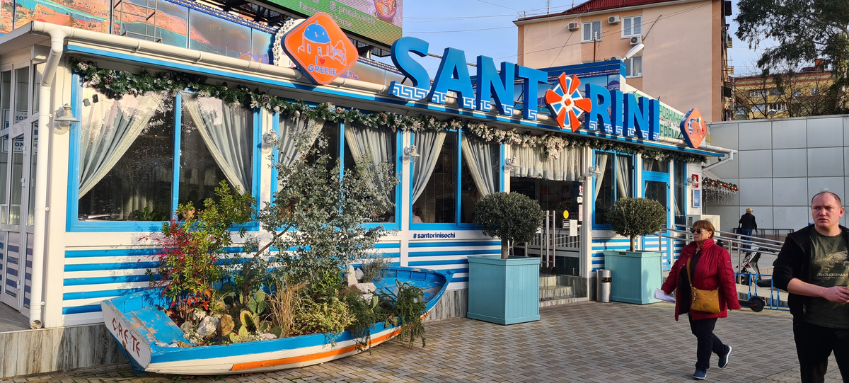 Сувлаки по “Русски” стали популярными в России где-то 15 лет назад, но особую популярность и распространение, блюдо получило в Краснодарском крае, а уж в Сочи сувлачных больше чем суммарное количество всех фаст-фуд кафе известных брендов (McDonald’s, Burge King, Subway, Spago…). И вот проголодавшись, я зашёл в заведение Santorini. Мне понравилось и я туда зачастил, поэтому описываю заходы по отдельности)