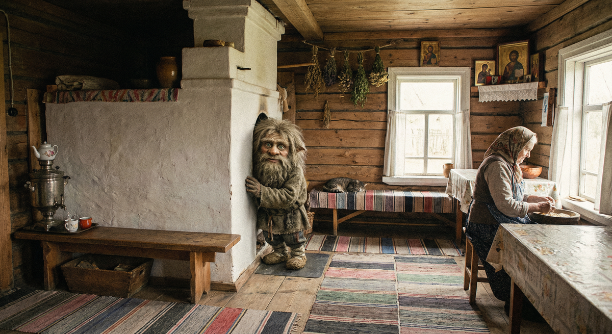 Домовой — не дух, не бес, не привидение. Он — хозяин избы, как дед в семье. Ему не семьдесят лет — ему столько же, сколько дому. Если дом старый, срубленный ещё до революции, домовой может быть древнее любого жителя. Бабушка говорила: «Домовой помнит, как первый хозяин венчался, как тут солдаты ночевали в войну, как дети в этой избе рождались и умирали». Он не злой — он ревнивый. Обидел — обиделся. Не покормил — наказал. А наказывает страшнее волка: может взять ребёнка и увести в своё царство, где время течёт иначе.