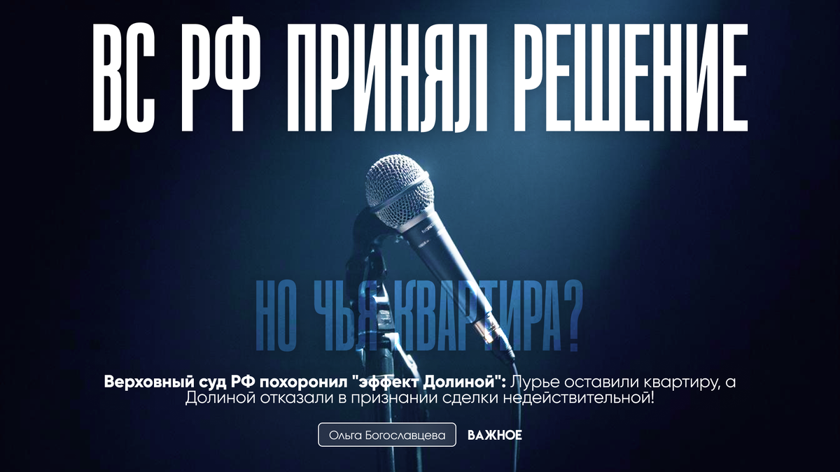 ❗ Верховный суд РФ похоронил "эффект Долиной": Лурье оставили квартиру, а Долиной отказали в признании сделки недействительной!