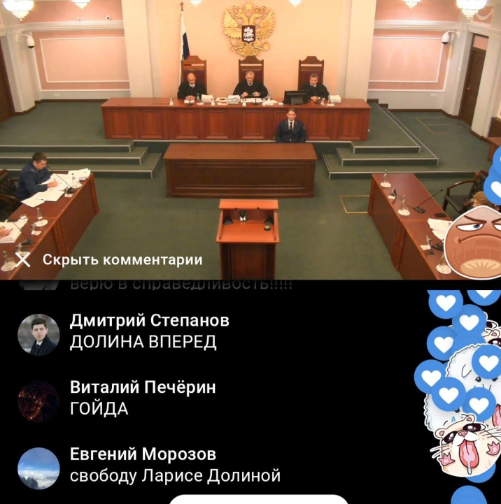 Трансляция судебного заседания по "делу Долиной" стала самой просматриваемой в истории Верховного суда России. Стрим уже посмотрели 169 тысяч зрителей.