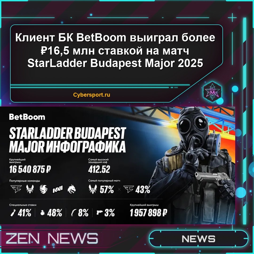 Клиент БК BetBoom выиграл более ₽16,5 млн ставкой на матч StarLadder Budapest Major 2025