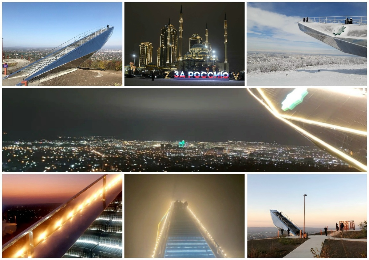 Так вот, кто ж знал, что эти ±500 метров, спустя годы, приведут от дома, в котором провел первые 7 лет жизни (через те самые дачи, клубнику, заброшенный ДК и тд) на «Лестницу в небо», т.е. на городскую смотровую площадку, открытую с 2019 года необычную достопримечательность. И что интересно, местные называют себя нохчи - Ноев народ. А гора, оказывается, это Суйр-Корт («войсковая вершина»). А наивысшая вершина хребта, по легендам, гласит о том, что тут прилег Дракон («Сарьмик бижна корта» - «вершина, где лег дракон»). И что «Лестница в небеса» будет подозрительно напоминать корабль в двух смыслах: Ноев ковчег и космический корабль. И что панорамный вид смотровой площадки будет показывать центр Грозного, чьи проспекты Путина и Ахмат-хаджи Кадырова (впрочем, это одна улица) берут начало как раз от подножия этой горы. Кто ж знал... Возможно, археологам стоит копнуть тут поглубже, но только осторожно, чтобы не разбудить «крылатого сторожа».