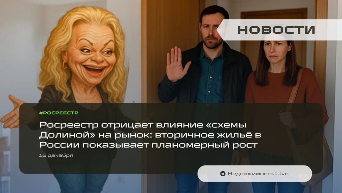 ⚡️ Росреестр отрицает влияние «схемы Долиной» на рынок: вторичное жильё в России показывает планомерный рост