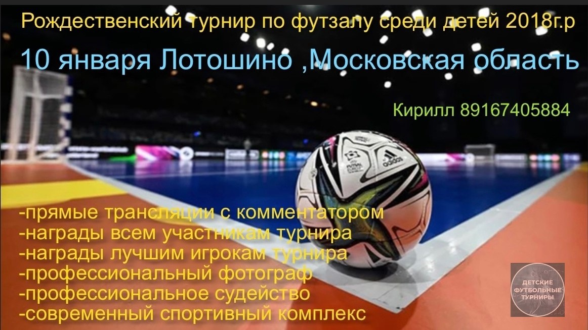 Приглашаем на турнир по футзалу среди детей 2018 г.р в самый экологически чистый район Подмосковья Лотошино !!! По всем вопросам обращаться по номеру тел.89167405884 -Кирилл -— #ФутбольныйТурнирЯнварь2026 #ФутбольныйТурнирМосковскаяОбласть2026 #ФутбольныйТурнирЛотошино2026 #ФутбольныйТурнирДевочкиМосковскаяОбласть2018гр Источник: https://vk.com/wall-178222694_2443