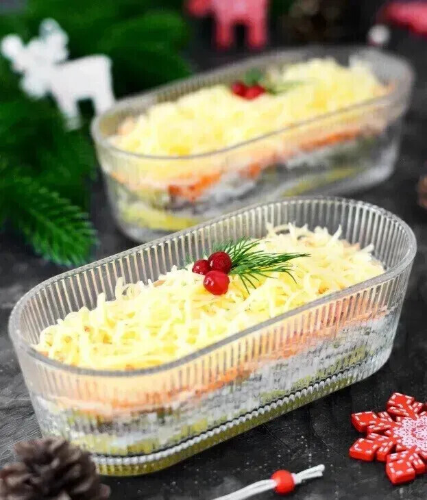 Очень вкусный слоёный салат на праздничный стол из доступных продуктов. Фишка салата в том, что в нем сочетаются вареное мясо и картошка с сырой морковью. От чего салат получается невероятно сочным. ИНГРЕДИЕНТЫ: Картофель - 250 г Говядина- 200 г Огурцы маринованные - 150 г Морковь сырая - 150 г Сыр Российский - 150 г Майонез - 200 г Чеснок - 2 зубчика Соль - по вкусу ПРИГОТОВЛЕНИЕ: Говядину и картофель нужно предварительно отварить. Варёное мясо остужать лучше либо в бульоне, в котором оно варилось чтобы она не пересохла. В майонез добавить для пикантности чеснок. Спрессуйте 2 зубчика чеснока в майонез и перемешайте. Нижним слоем выложите натёртый на крупной тёрке картофель и смажьте чесночным майонезом. Картофельный слой можно слегка подсолить. Следом выложите слой нарезанной соломкой говядины и также смажьте чесночным майонезом. После говядины кладём слой маринованных огурцов, натёртых на крупной тёрке. Огурцы также смазываем небольшим количеством чесночного майонеза. Далее