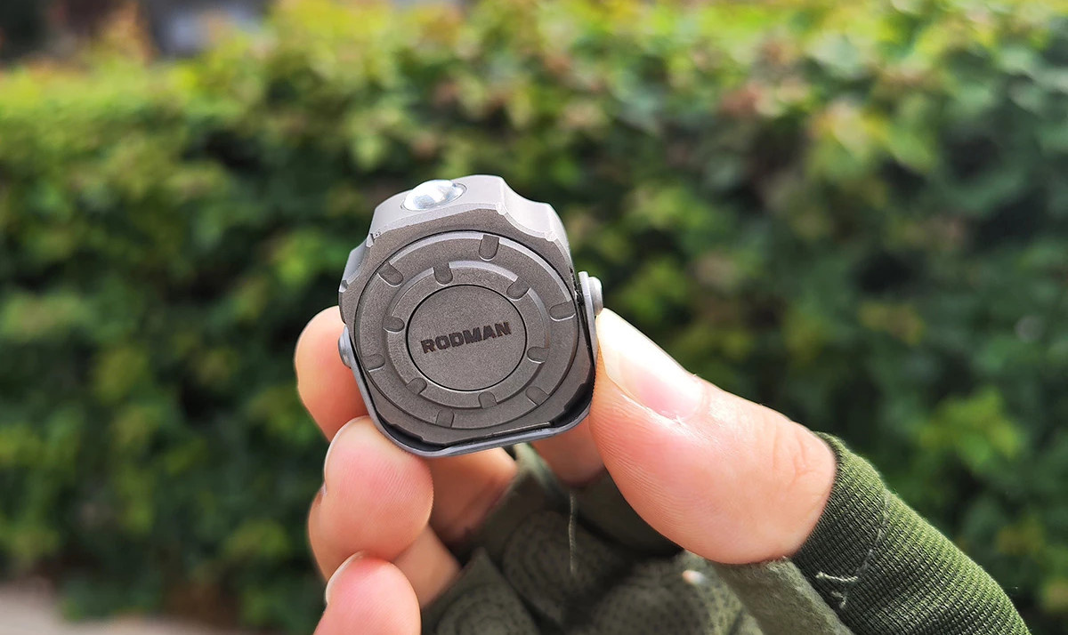Фонарик ED08 компании Rodman можно считать идеальным для повседневного ношения, поскольку он очень компактный (размером с монетку), имеет прочный корпус (изготовлен из титана Grade 5), весит всего 32 г и дает яркий свет в 300 лм, благодаря 13 светодиодам. Цветовая гамма представлена красным, синим, ультрафиолетовым и теплым белым цветом. Высокое качество света обеспечивает выпуклая линза «лягушачий глаз», рассеивающая луч на 55 метров. Яркость регулируется от 300 лм, до 100, 35 и 1 лм. В экстренных ситуациях ED08 также может работать в режиме стробоскопа. Фонарик оснащен аккумулятором емкостью 150 мА⋅ч с подзарядкой в течение 45 минут и временем работы до 26 часов при минимальной яркости. Прочный титановый корпус обладает водонепроницаемостью, соответствующий стандарту IP68, и высокой пылезащищенностью. Для стационарного использования предусмотрена выдвижная магнитная подставка, которую можно установить под углом 105 градусов и закрепить на любой металлической поверхности. Для удобного