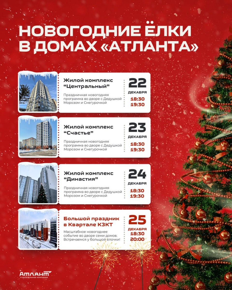 Встречаем Новогодние Ёлки во дворах новых домов «Атланта