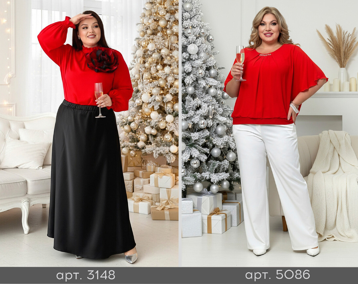 Праздничный образ к Новому году не всегда требует покупки нового наряда. Иногда достаточно одной яркой детали, чтобы привычная вещь заиграла торжественно. Сегодня разберём пять удачных сочетаний, которые помогут создать эффектный наряд к празднику. Главная идея — верхняя часть наряда становится центром внимания за счет цвета или блеска. Даже привычная вещь заиграет по-новогоднему, если правильно подобрать акценты. Красный цвет традиционно ассоциируется с праздником и мгновенно привлекает взгляд. Яркий жакет в сочетании с нейтральным низом и продуманными пропорциями выглядит одновременно сдержанно и торжественно. Советы для праздничного образа: один яркий акцент и спокойная база; металлические детали — пуговицы, ремень, украшения; игра с фактурами — твид, бархат, атлас создают глубину; минимализм в украшениях — одна‑две выразительные детали смотрятся дороже массы мелких. На моделях: Что можно добавить: крупные серьги, топ с блеском или атласный, фактурный клатч, обувь с декоративной дет
