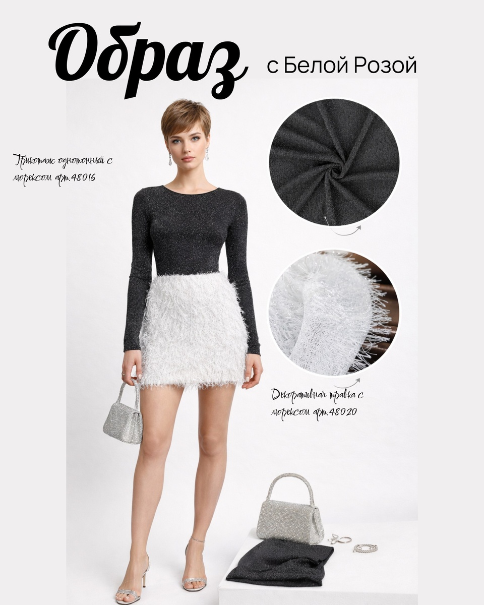 ✨Шьем трендовый образ✨ Дорогие друзья, посмотрите, какое стильное и актуальное платье можно создать из наших тканей 💫 Идеальный вариант для вечеринок, выходов и особых поводов. И да — обе ткани из образа — наши новинки 🖤 Трикотаж с люрексом • Артикул: 48016 • Цвет: чёрный • Состав: 90% полиэстер, 10% металлизированная нить • Ширина: 150 см • Плотность: 150 г/м² • Цена: 799 ₽/м 🤍 Декоративная травка с люрексом — хит продаж • Артикул: 48020 • Цвет: белый • Состав: 90% полиэстер, 10% металлизированная нить • Ширина: 150 см • Цена: 749 ₽/м Такой дуэт тканей — это готовая формула трендового платья, которое точно не останется без внимания 🌸 Приходите в магазин тканей и рукоделия “Белая Роза” Потрогайте, примерьте взглядом, вдохновитесь и унесите с собой ткани, из которых рождаются самые красивые образы. Ждём вас за новинками 🤍