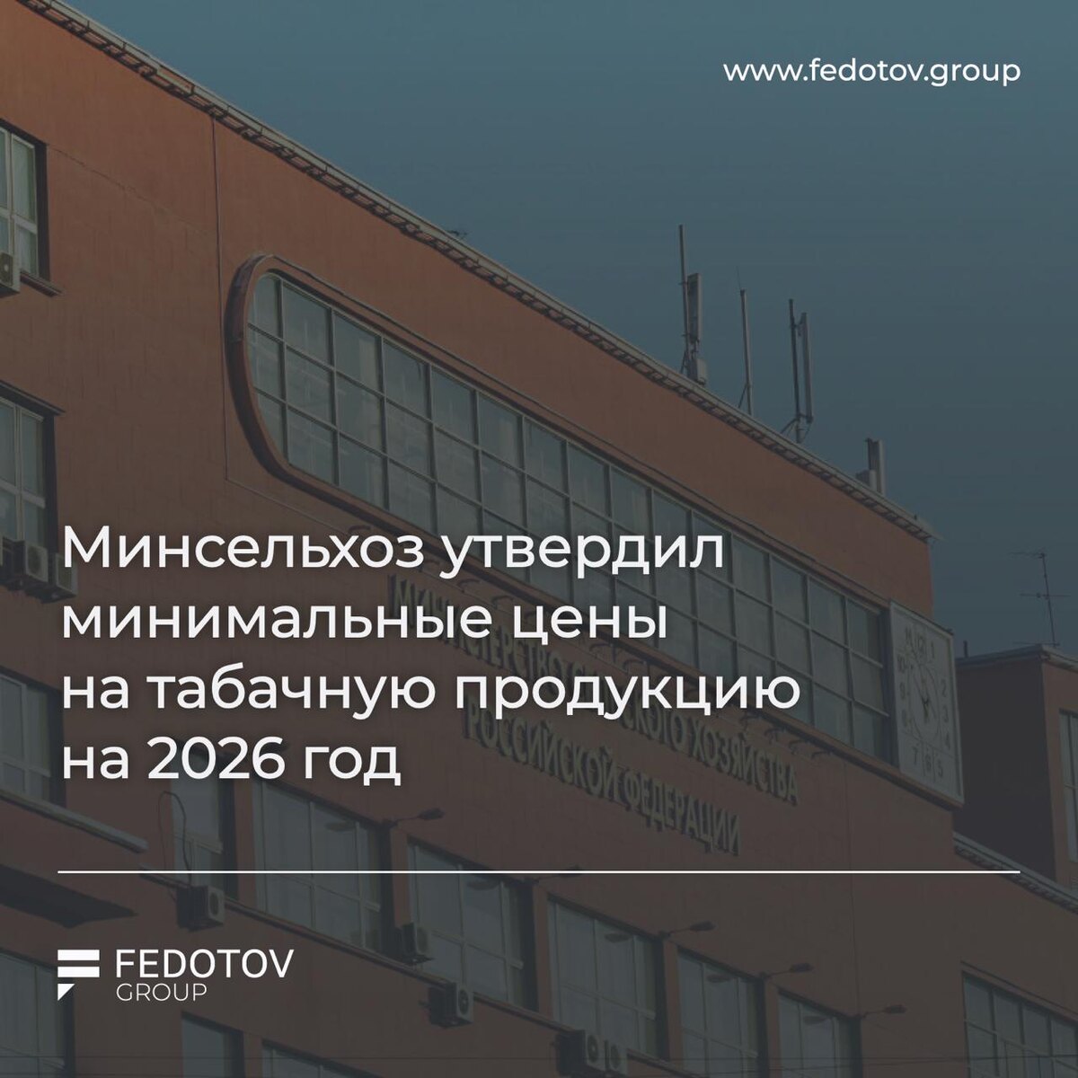 Минсельхоз утвердил минимальные цены на табачную продукцию на 2026 год Ранее были опубликованы МЦ на никотинсодержащую продукцию, теперь — и на табачные изделия. С 1 марта 2026 года все участники рынка — производители, импортеры, опт и розница — должны работать строго в рамках утверждённых минимальных цен. Напоминаем: в нашем калькуляторе вы можете быстро и корректно рассчитать МЦ по всем категориям табачной и никотинсодержащей продукции с учётом актуальных требований законодательства: https://fedotov.group/calculator-2026 Пользуйтесь калькулятором сами и делитесь с коллегами — он будет особенно полезен при планировании закупок и ценообразовании на 2026 год. Источник здесь. Получить консультацию | Дать буст | Попасть в Retail Expert