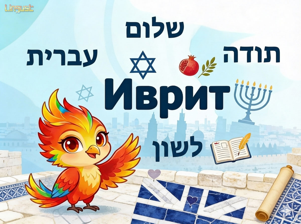 Иврит - это путешествие во времени: язык Библии, возрожденный как средство живого общения в современном Израиле. Изучение его с нуля - увлекательный вызов. Курс на сайте Лингуст аккуратно проведет вас через непривычный алфавит (справа налево!), логичную грамматику и лексику, соединяя древние корни с современными диалогами. Алфавит языка Иврит. Согласные и гласные. Транскрипция Урок 1. Буквы י,ל,מ,ם,שׁ,ש,א,בּ,ה,ו,ז,ח Урок 2. Буквы ן,נ,כּ,תּ,ת Урок 3. Буквы פ,ב,ג,ד,ר,ק Урок 4. Буквы ט,ס,כ,ע,ךְ,ךּ,ך Урок 5. Буквы צ,ץ,שׂ,פּ,ף Урок 6. Диалог. Место прилагательного. Письменные буквы ש,ס,מ,ל,י,ח,ז Урок 7. Определенный артикль. Род. Настоящее время глагола. Числительные и др. Урок 8. Притяжательные местоимения ед. ч. Предлоги. Указательные м. Урок 9. Множественное число. Притяжательные и личные м. (им. п.) и др. Урок 10. Корень глагола. Неопределённая форма и др. Урок 11. Союз ו. Чередование בּכּפּ и בכפ. Числительные 11-19 (жен. р.) Урок 12. Указание времени. Частица את. Предлоги. Глагол יכל