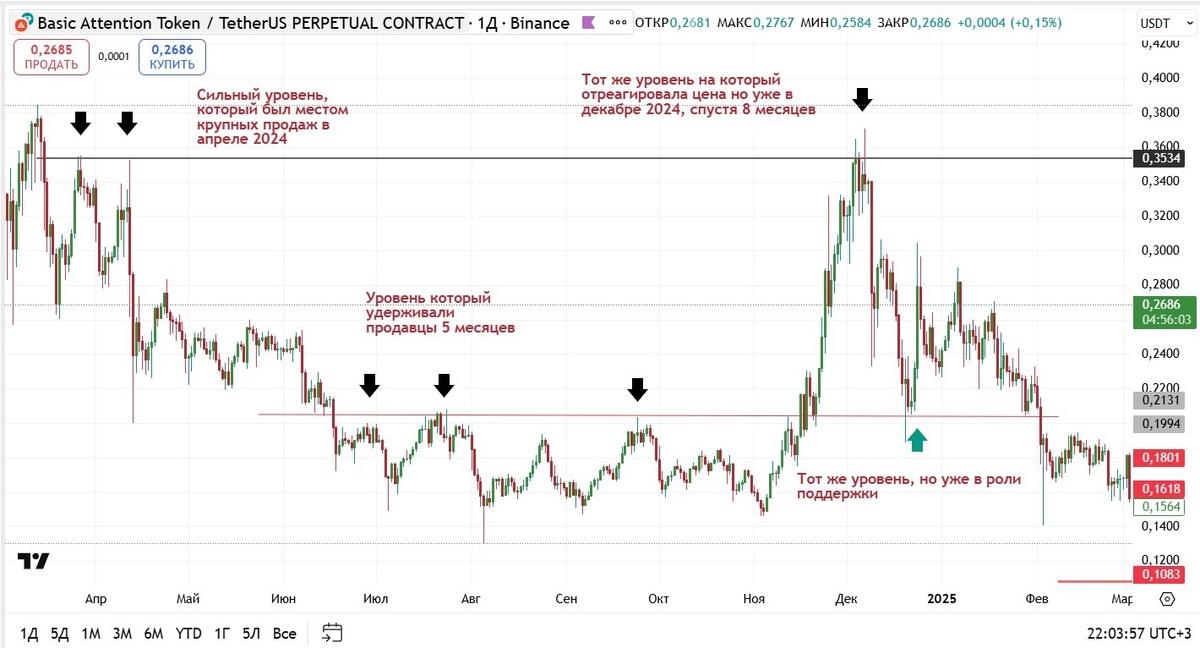 Поэтому уровень появляется там, где у людей были сильные переживания — страх, жадность, эйфория, паника. Цена возвращается туда, и всё повторяется.