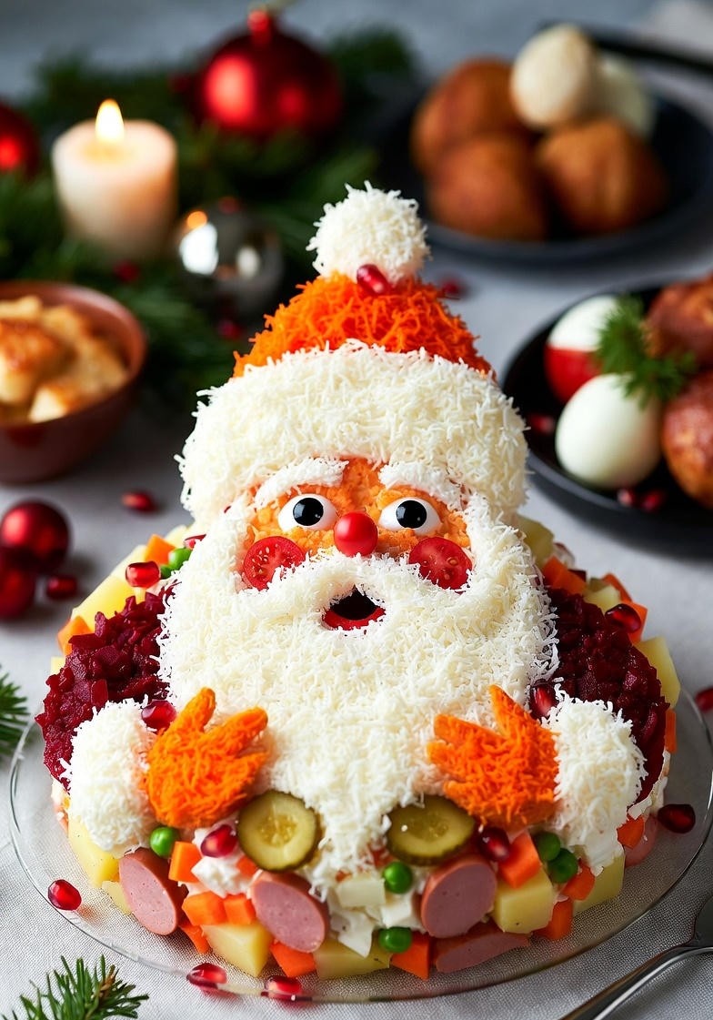 Эй, праздничный народ! Новый год на носу, а ты всё ещё думаешь, чем удивить гостей? Забудь про магазинную херню. Я, УСТЫЙ ШЕФ, собрал для тебя убойное меню: салат в виде Деда Мороза, запечённого гуся с яблоками, мандариновый десерт и коктейль, от которого все захмелеют в хорошем смысле. Всё просто готовится, выглядит шикарно, а жрётся до последней крошки. Готовь заранее, наливай шампанское и встречай год как настоящий хозяин! 1. Салат «Дед Мороз» — чтобы сразу было понятно: праздник пришёл Бери классический оливье (картошка, морковь, колбаса докторская, солёные огурцы, яйца, зелёный горошек, майонез). Выложи на большое блюдо в форме лица Деда Мороза: Борода и шапка — из тёртого яичного белка или натёртого сыра Шуба — из натёртой варёной свёклы или красного болгарского перца Нос — кусочек морковки или помидора Глаза и рот — маслины или зерна граната