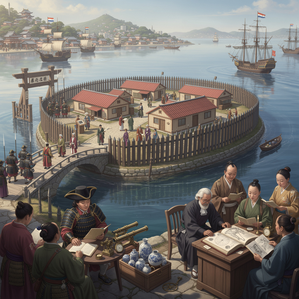 История этого «окна в Европу» началась с огня и крови. В 1637 году на полуострове Симабара вспыхнуло восстание десятков тысяч японских крестьян, обращённых в католичество португальскими миссионерами. Для сёгуната Токугава, едва установившего хрупкий мир после столетия междоусобиц, это стало окончательным доказательством: чужеземная религия — смертельный вирус для социального организма Японии. Восстание было утоплено в крови, и участь европейцев была решена. Португальцев изгнали навсегда. Но голландцам, протестантам с чисто коммерческими интересами, не замешанным в миссионерстве, была дарована невероятная привилегия — остаться. Их «раем» стал искусственный остров-веер, построенный ранее для португальцев.